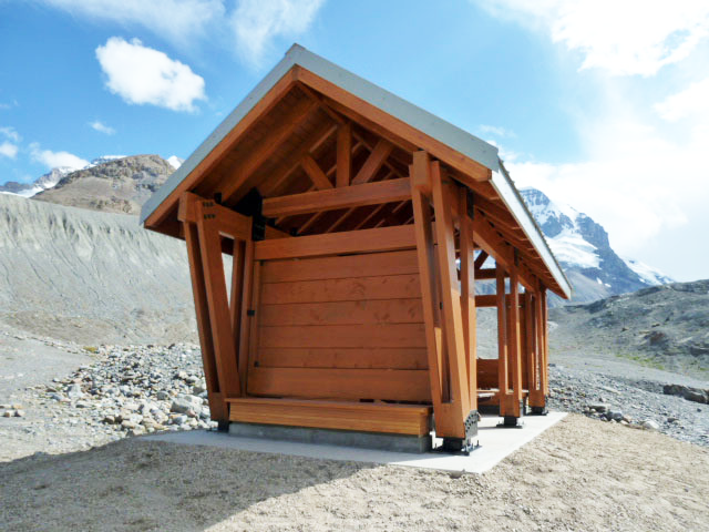Jasper Icefields Structures are a series of buildings designed to accommodate tourists at the Icefields site. These buildings provide interpretive information, signage and sheltered areas for visitors on the site. Design is intended to fit Parks Canada branding for small structures located in the Mountain Park. The branding intentions also reflect Jasper’s identity as a non-commercial tourist destination.